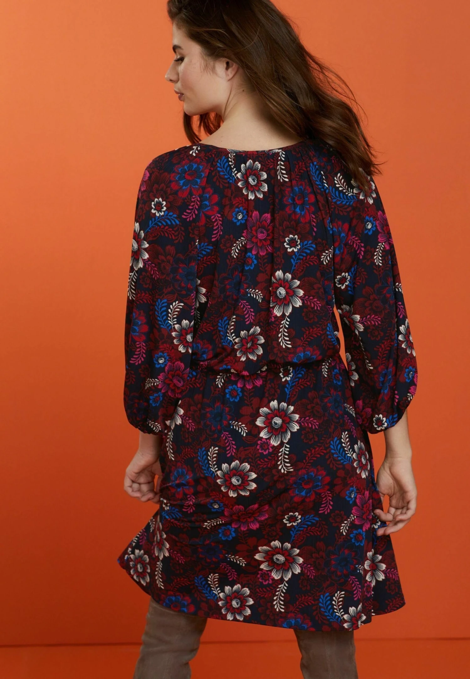 Next Long Sleeve Slinky – Jurk – Navy Purple Floral