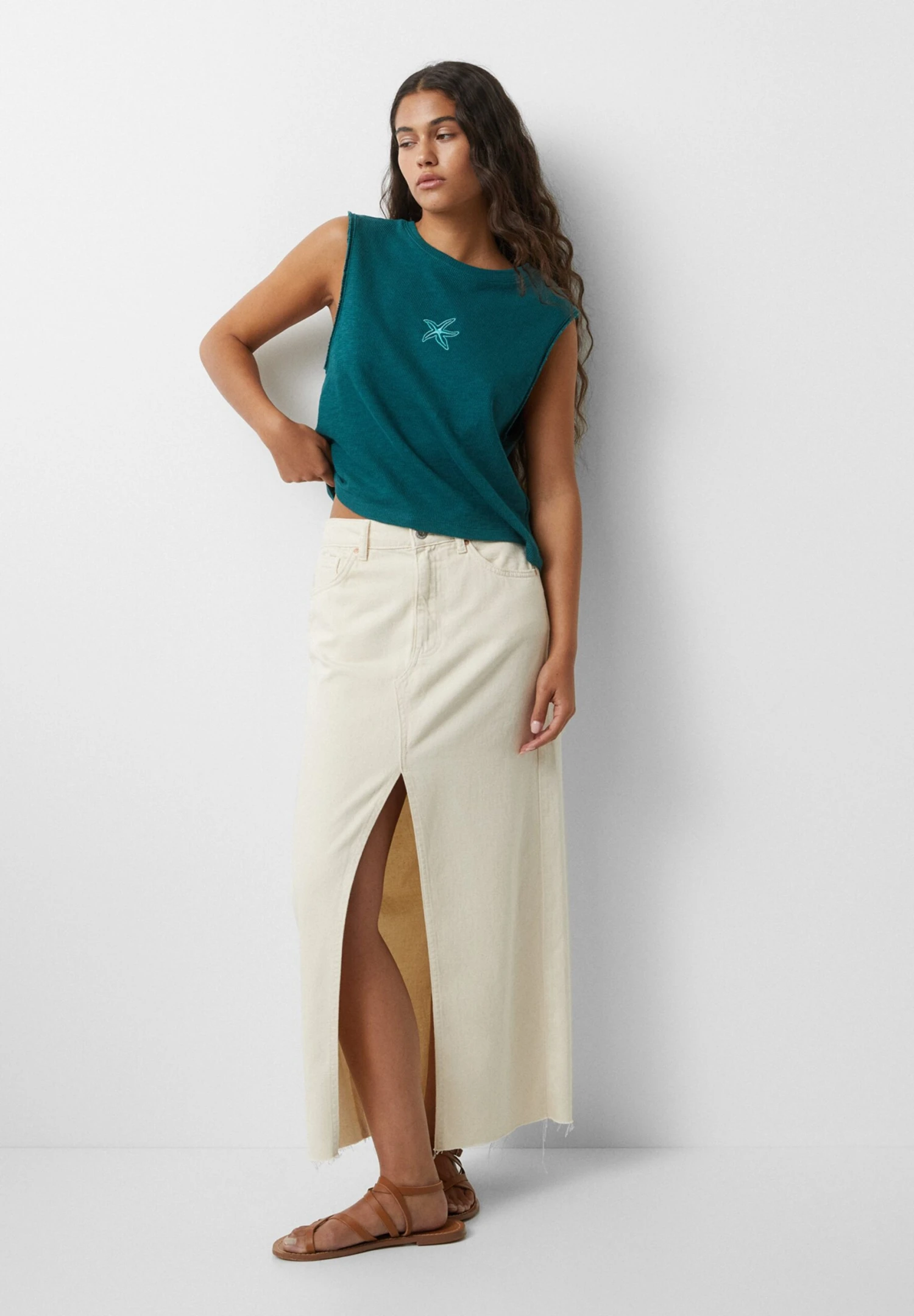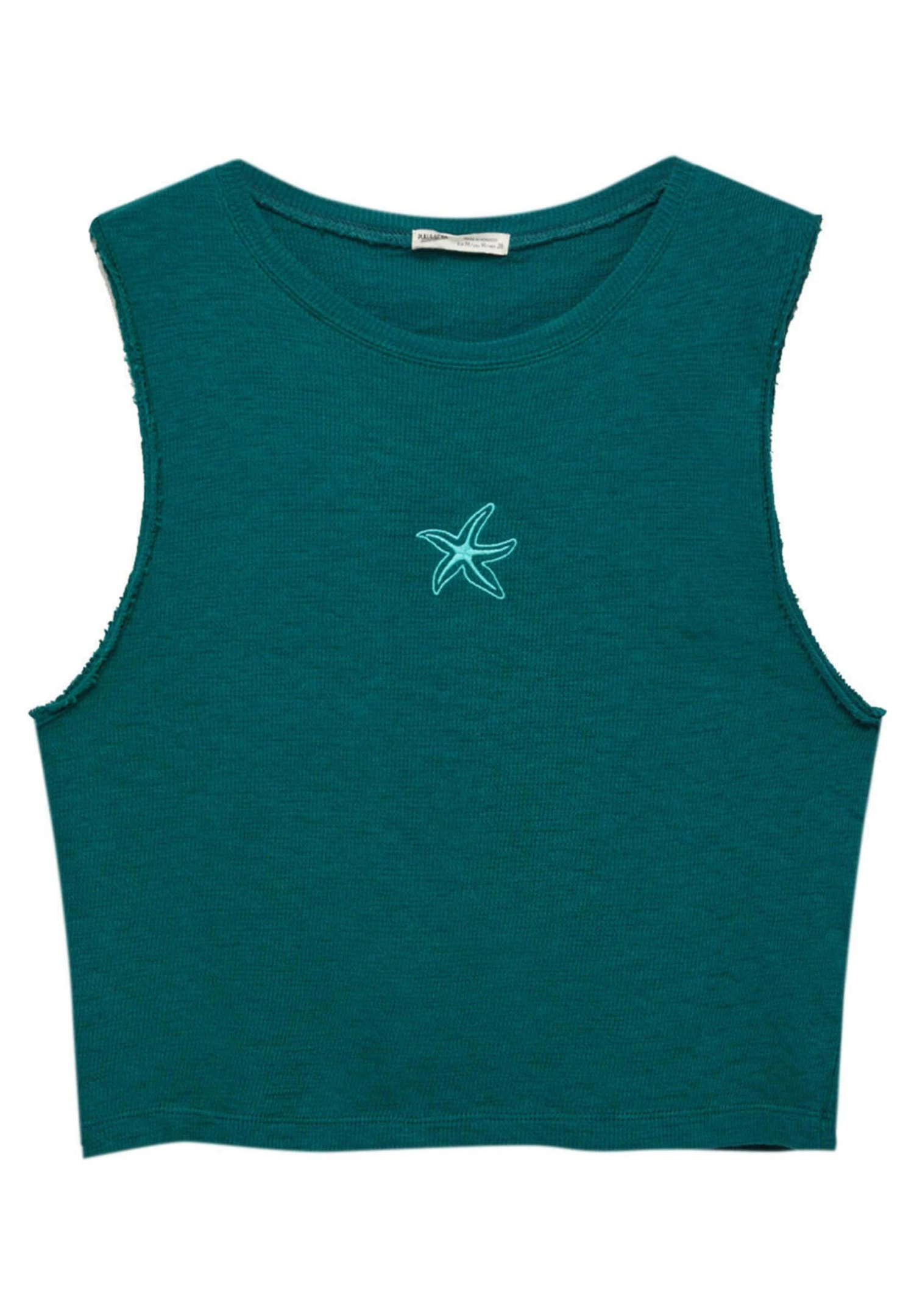 PULL & BEAR Sleeveless Rustic With Embroidery – Top – Green